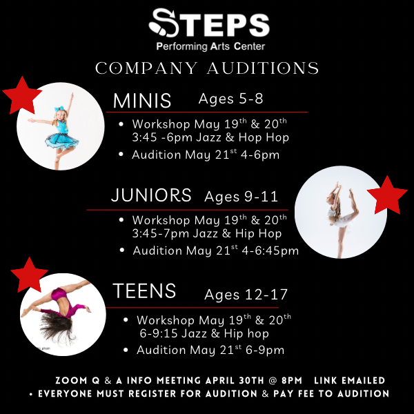 . ALL dancers invited to attend the audition workshops and in person group audition. Info listed below.